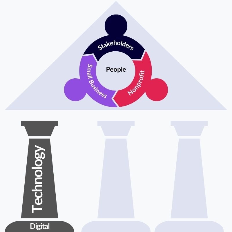 Our mission is to empower small businesses and nonprofits to thrive in the digital age by providing innovative products, solutions, resources, and support to overcome financial constraints and knowledge gaps. We aim to be the foundation upon which local companies and society can build their digital expertise, harness emerging technologies, and navigate the dynamic landscape with confidence and adaptability, ensuring they seize future opportunities and achieve their goals.